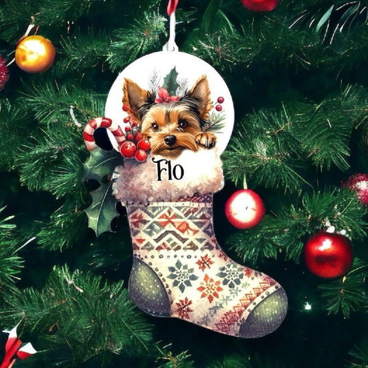 Personalised Yorkshire Terrier Pet Dog Christmas Stocking Bauble