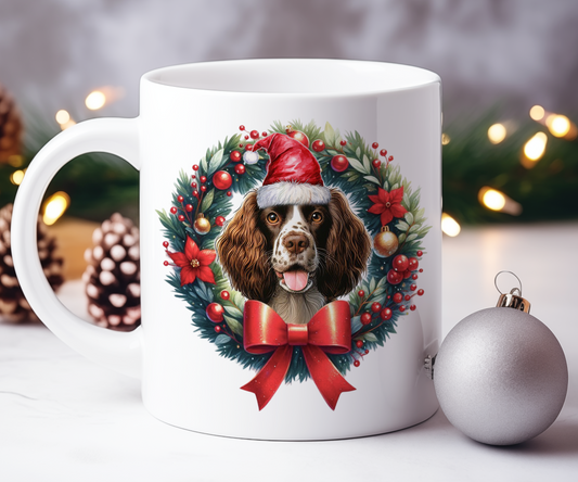 Personalised Welsh Springer Spaniel Dog Christmas Wreath Gift Mug