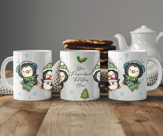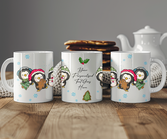 Personalised Whimsical Christmas 3 Penguins - Gift Mug
