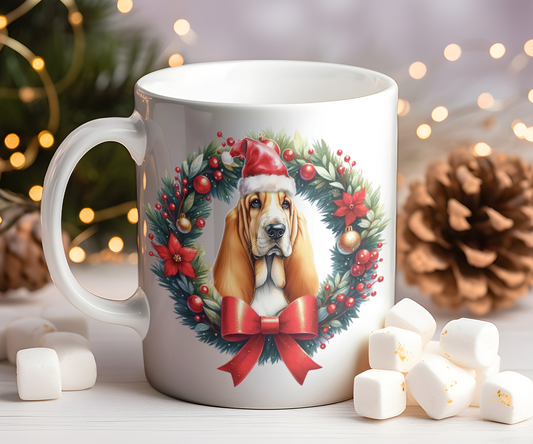 Personalised Basset Hound Dog Christmas Wreath Gift Mug
