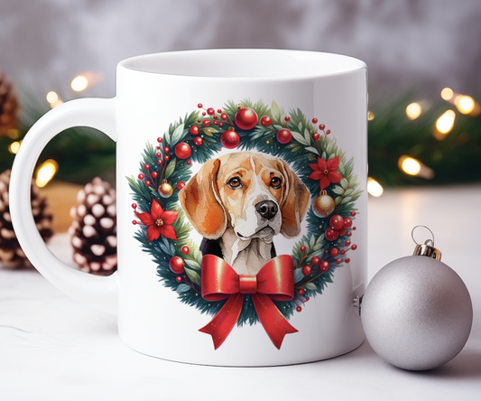 Personalised Beagle Dog Christmas Wreath Gift Mug