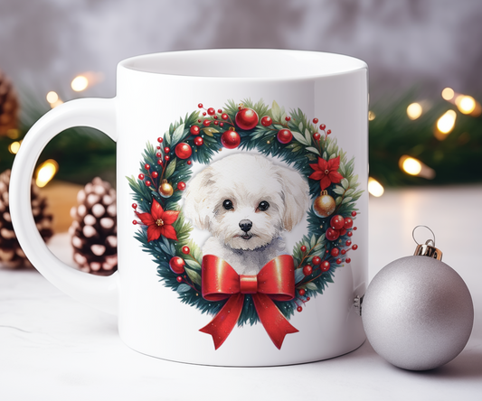 Personalised Bichon Frise Dog Christmas Wreath Gift Mug