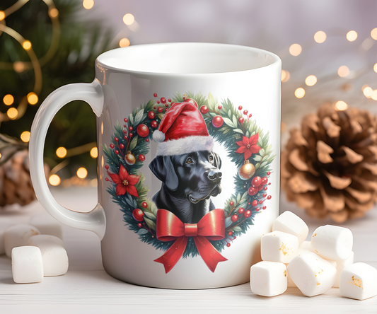 Personalised Black Labrador Dog Christmas Wreath Gift Mug