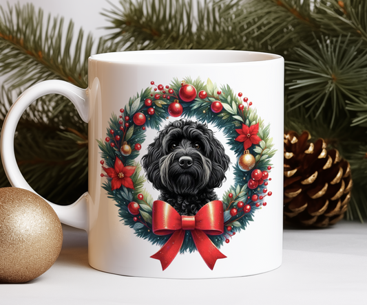 Personalised Black Cockapoo Dog Christmas Wreath Gift Mug