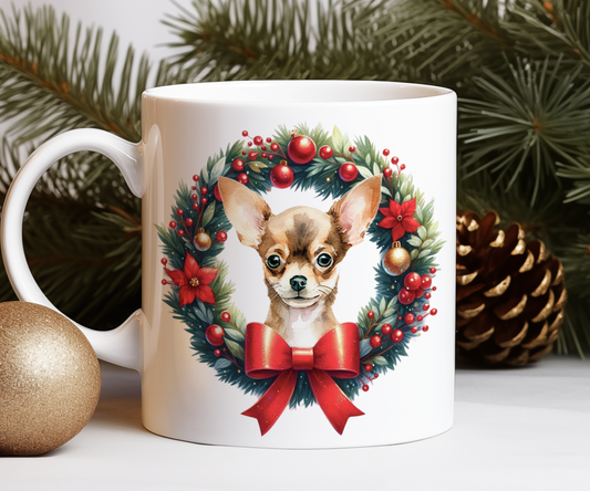 Personalised Chihuahua Dog Christmas Wreath Gift Mug