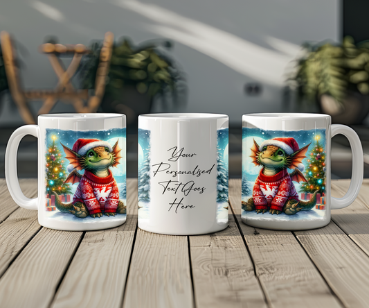 Personalised Christmas Cute Dragon in a Christmas Jumper Gift Mug
