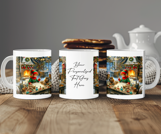 Personalised Christmas Elf in Workshop Gift Mug