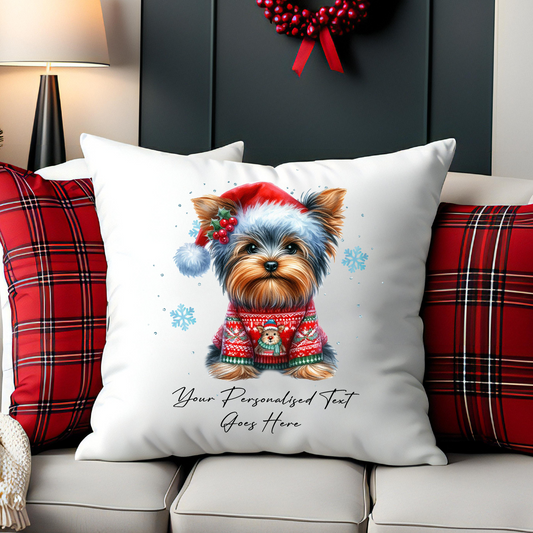 Personalised Yorkshire Terrier Dog Christmas Jumper Cushion Cover Gift