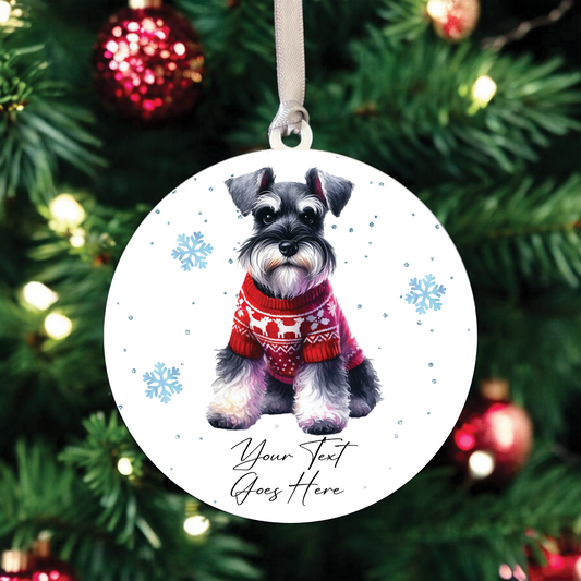 A Personalised Schnauzer Jumper Dog Hanging Bauble Decoration - Style D