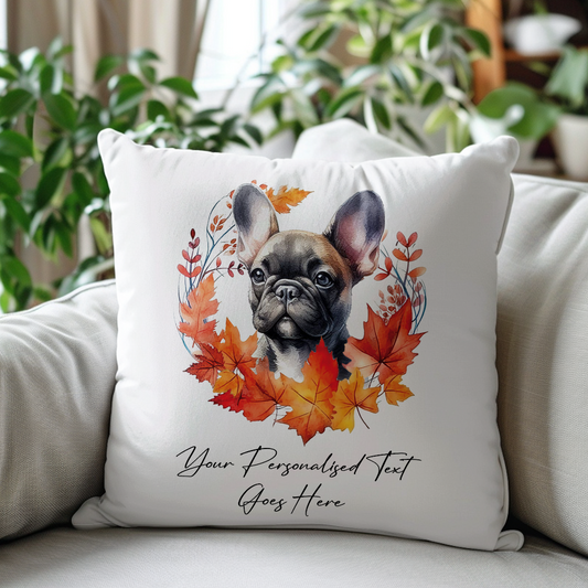 French Bulldog in Autumn Wreath Personalised Gift Cushion Cover