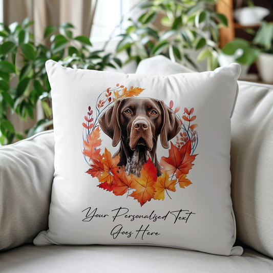 Liver and Black German Shorthaired Pointer in Autumn Wreath Personalised Gift Cushion Cover