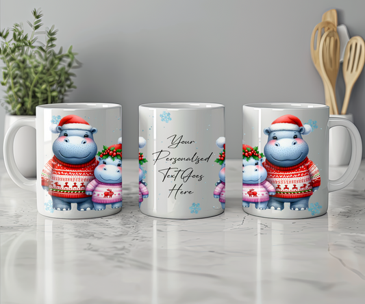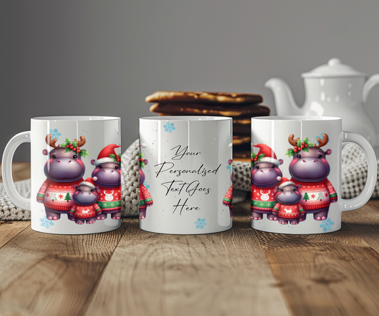 Personalised Christmas Hippo Family Gift Mug - Style A