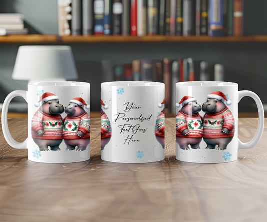 Personalised Christmas Hippo Couple Gift Mug - Style A