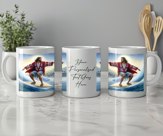 Personalised Christmas Jumper Jesus Surfing Gift Mug - Style B