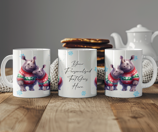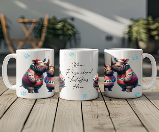 Personalised Christmas Rhino Couple Gift Mug - Style C