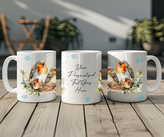 Personalised Christmas Robin Couple Gift Mug - Style A