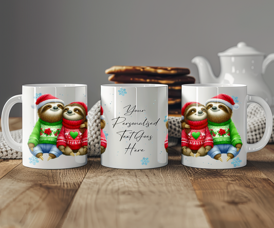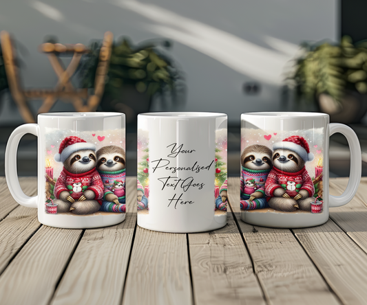 Personalised Christmas Sloth Couple Gift Mug - Style C