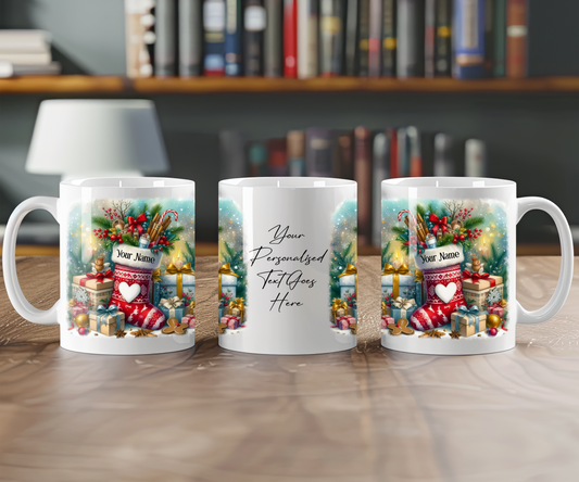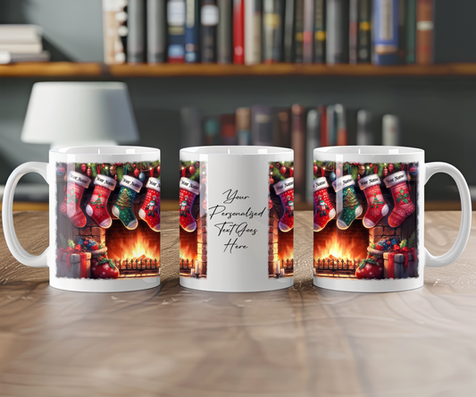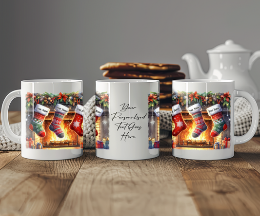 Personalised Christmas Stocking Family - 4 Names - Gift Mug