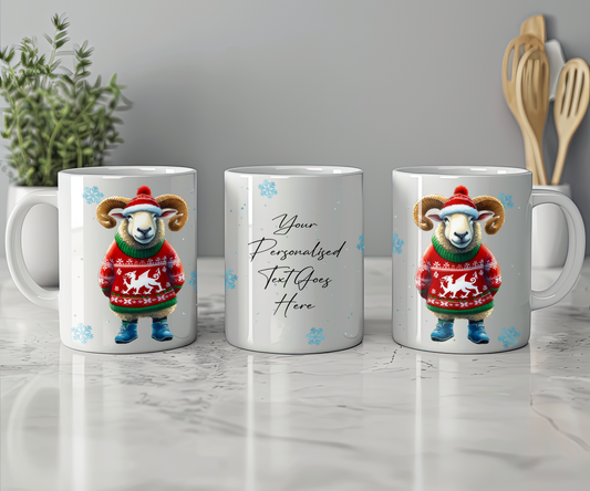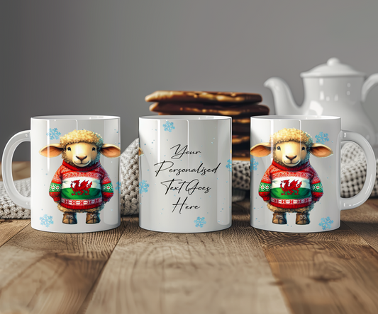 Personalised Christmas Sheep in a Welsh Christmas Jumper Gift Mug - Style B