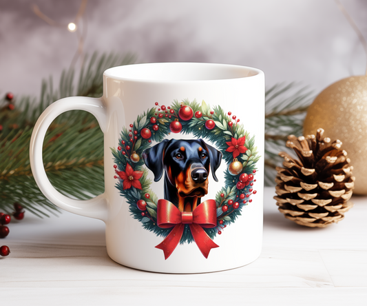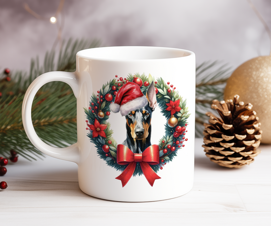 Personalised Doberman Dog Christmas Wreath Gift Mug - Style B