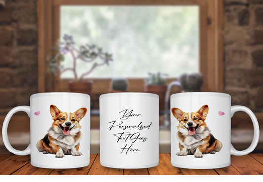Personalised Dog Gift Mug - Corgi with Custom Message and Optional Hearts