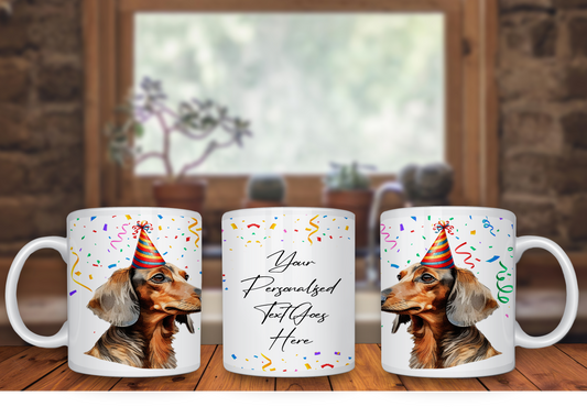Personalised Dog Gift Mug - Dachshund with Birthday Congratulations Party Hat