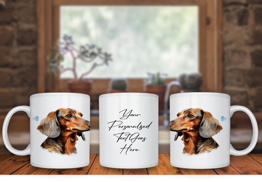 Personalised Dog Gift Mug - Dachshund with Custom Message and Optional Hearts