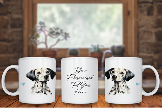 Personalised Dog Gift Mug - Dalmation with Custom Message and Optional Hearts