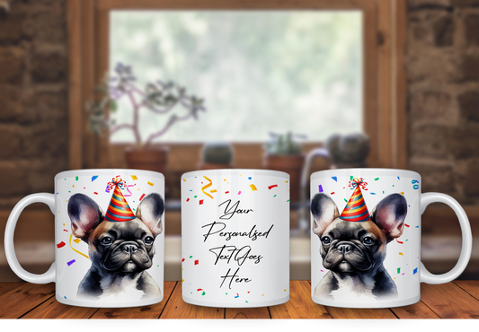 Personalised Dog Gift Mug - French Bulldog with Birthday Congratulations Party Hat