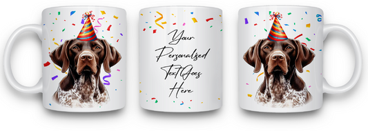 Personalised Dog Gift Mug - Liver and White German Pointer with Birthday Congratulations Party Hat