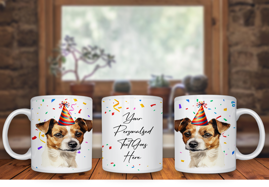 Personalised Dog Gift Mug - Jack Russell with Birthday Congratulations Party Hat