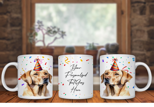 Personalised Dog Gift Mug - Labrador Retreiver with Birthday Congratulations Party Hat