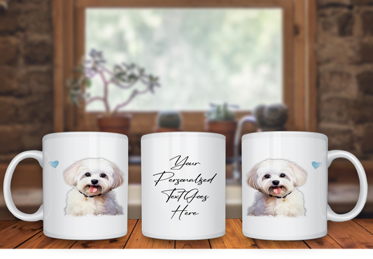 Personalised Dog Gift Mug - Maltese with Custom Message and Optional Hearts