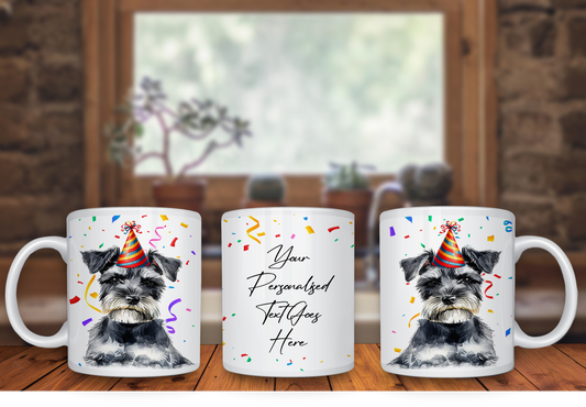 Personalised Dog Gift Mug - Miniature Schnauzer with Birthday Congratulations Party Hat