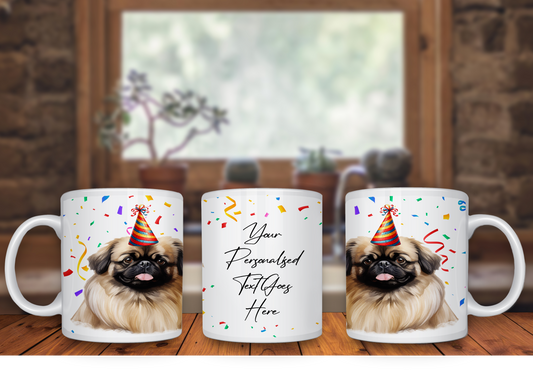 Personalised Dog Gift Mug - Pekingese with Birthday Congratulations Party Hat
