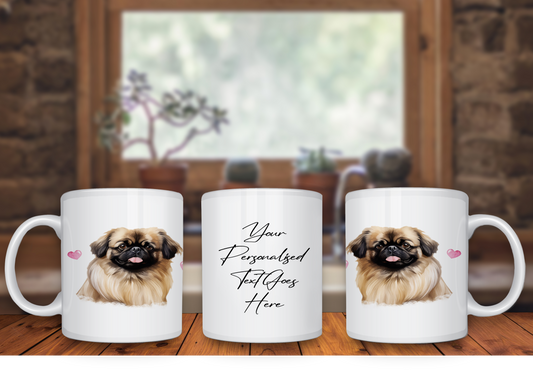 Personalised Dog Gift Mug - Pekingese with Custom Message and Optional Hearts