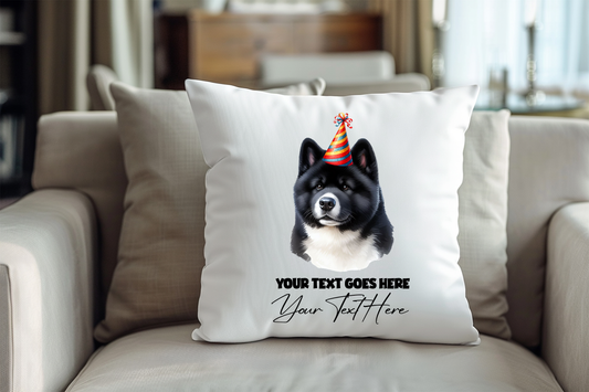 Personalised Black and White Akita Birthday Congratulations Pet Keepsake Cushion Gift