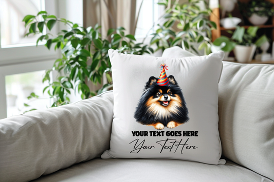 Personalised Black and Tan Pomeranian Birthday Congratulations Pet Keepsake Cushion Gift