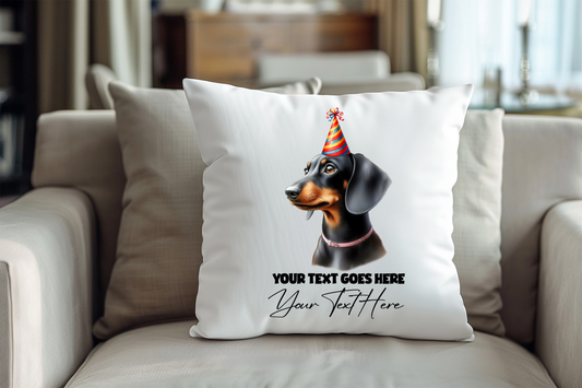 Personalised Black and Tan Dachshund Birthday Party Congratulations Cushion Pet Keepsake Gift
