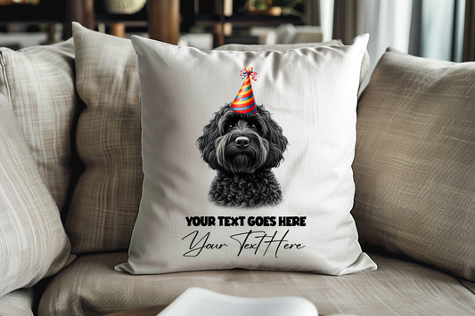 Personalised Black Cockapoo Birthday Party Congratulations Cushion Pet Keepsake Gift