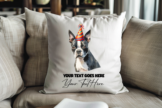 Personalised Boston Terrier Birthday Party Congratulations Cushion Pet Keepsake Gif