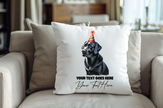 Personalised Black Labrador Birthday Party Congratulations Cushion Pet Keepsake Gift