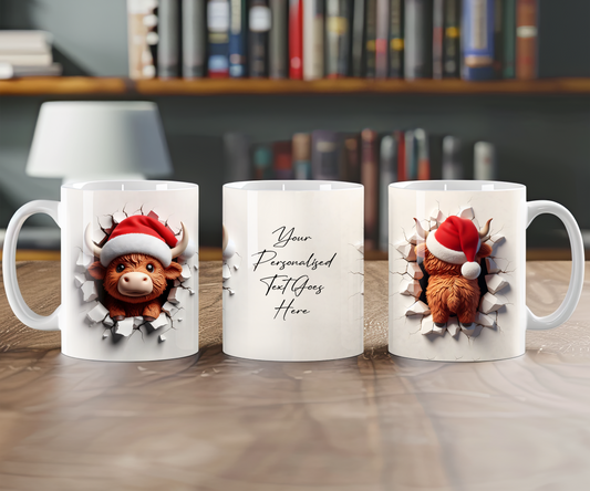 Personalised Highland Cow BREAKOUT Christmas Gift Mug
