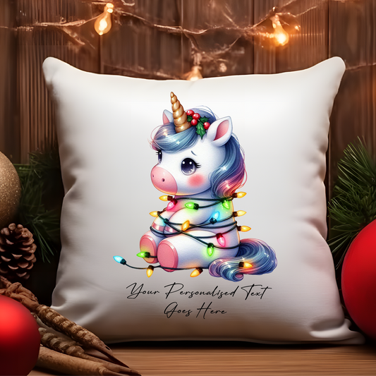 Personalised Unicorn in Christmas Lights Cushion Cover Gift - Style A