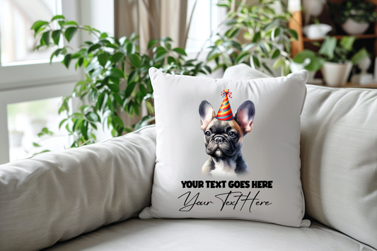 Personalised French Bulldog Birthday Party Congratulations Cushion Pet Keepsake Gift