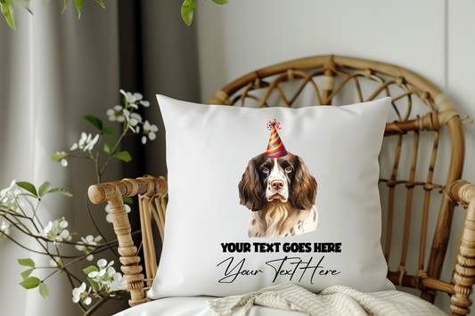 Personalised English Springer Spaniel Birthday Party Congratulations Cushion Pet Keepsake Gift
