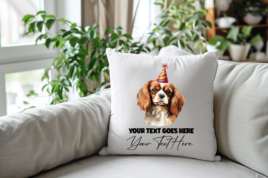 Personalised King Charles Spaniel Birthday Party Congratulations Cushion Pet Keepsake Gift