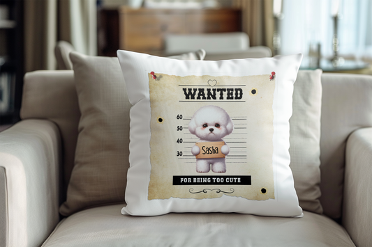 Personalised Dog - Bichon Frise WANTED Gift Cushion
