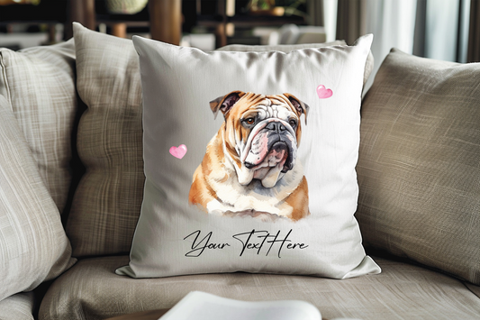 Personalised Bulldog Hearts Cushion Keepsake Gift - DHC02