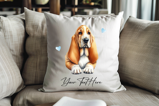 Personalised Basset Hound Hearts Cushion Keepsake Gift